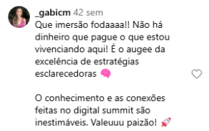 Mais de 5 mil pessoas já vieram para o Digital Summit e todos eles falaram: ‘Em dois dias, eu evoluí MUITO mais do que em anos.’ E em 2026, é você que vai viver essa experiência.